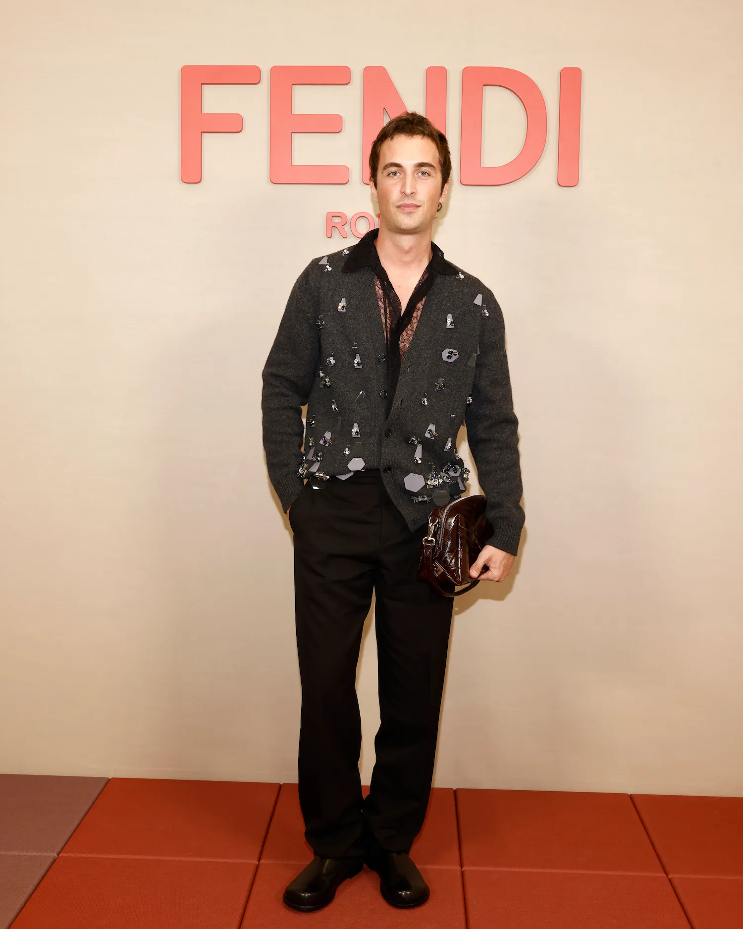 The set, designed by Marc Newson, featured a pixelated color field that mirrored the collection’s mood: vibrant, fluid, and futuristic. The result was a show that captured both romance and edge — quintessentially FENDI.