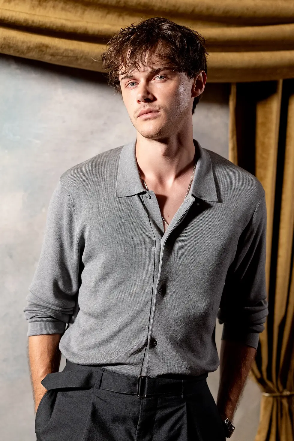 Chris Briney kept it sharp in an Officine Générale Brent Spread Collar Cardigan paired with Hugo Wool Italian Fresco Pants, blending laid-back elegance with NYFW-ready style.